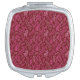 Burgundy and Pink Floral Tropical Leaf Pattern Compact Mirror