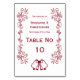 Burgundy Bells Scrollwork Design Wedding Table Number