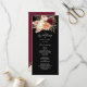 Stylish and moody, this double-sided wedding program features romantic watercolor florals in burgundy, blush, and ivory on bold black and wine backgrounds. Perfect for fall or winter weddings, it elegantly outlines your ceremony details and wedding party members. A beautiful keepsake for your guests.