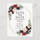 Burgundy Blue Floral Geo Frame Save the Date Postcard