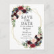 Burgundy Blue Floral Gold Geo Frame Save the Date Postcard