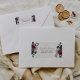 The borders of this romantic modern wedding return address label feature watercolor floral bouquets in shades of burgundy and blue. The customizable text combines elegant burgundy handwriting script and charcoal gray copperplate font on a white background. Ideal for a fall or winter wedding.