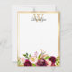 Elegant Modern Girly Chic Script Burgundy Blush Floral Green Leaves Botanical Custom Personalized Monogram Name Note cards. Featuring monogram initial and hand lettered font style first name script and a watercolor botanical garden floral burgundy bordo maroon blush pink roses with green leaves arrangement. Around faux gold double (2) line frame border. Perfect, pretty feminine gift idea for business, professional or any occasion.