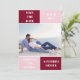 Burgundy red and blush pink color block wedding Save the Date card. The black includes a pattern with wide bands in burgundy and blush pink.
