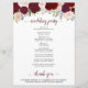 These wedding programs are elegant and tasteful. The design features a bevy of hand painted watercolor roses in shades of burgundy red and blush pink, surrounded by eucalyptus leaves and garden foliage. The typography features lacy script calligraphy, and there is room for details on the ceremony, the bridal party, and a short thank you. This program is available as a digital download for last minute at home printing.
