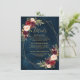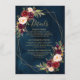 Elegant modern romantic geometric watercolor floral wedding Details card features a bouquet of burgundy / marsala , blush pink, Purple, peach watercolor roses with matching foliage on navy blue background. Perfect for a fall / midsummer wedding. Please find more matching designs and variations from my "blissweddingpaperie" store. And feel free to contact me for further customization or matching items