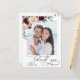 Stylish and whimsical card to thank your guests for being a part of your wedding day. This customizable thank you postcard features white modern calligraphy overlay. This design is also available in other cards.