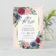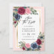 Navy blue, burgundy and blush pink wedding save the date card featuring floral corners framing the wedding details. Easily personalize online. Matching items available to complement this floral wedding save the date card.