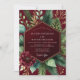 Rich burgundy hues are complemented by deep green foliage and touches of gold. This design evokes a sophisticated, wintry atmosphere with elements resembling pine branches and botanical accents. The overall impression is one of refined elegance.