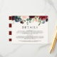 A unique burgundy floral themed wedding details card tailored specifically to your future wedding.