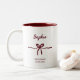 Burgundy Bow Bridesmaid Script Modern Name Date Two-Tone Coffee Mug