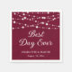 These burgundy rustic wedding paper napkins featuring a burlap background adorned with string lights are ideal for a burgundy rustic country, backyard or barn wedding party. Easily personalize these napkins with your wedding details.