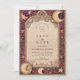 This romantic celestial wedding design captures the beauty of the night sky with rich burgundy and gold tones. Framed by ornate baroque details, glowing moons, and shining stars, it creates an atmosphere of vintage celestial elegance. Perfect for evening weddings, gothic celebrations, or couples inspired by cosmic romance.