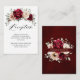 Elegant Burgundy Red, Champagne ivory earthy floral theme wedding reception card featuring elegant bouquet of Burgundy, champagne ivory color roses peonies and sage green eucalyptus leaves. Please contact me for any help in customization or if you need any other product with this design.