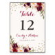 Burgundy Confetti Floral Table Number