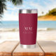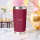 Burgundy background color. Personalize and add your monogram initials and full name. White text. For both him and her.