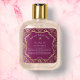 A label for soap and/or cosmetics with a burgundy damask and gold foil design. This label has lots of space for your ingredients, product description, and other information. Upload your own logo or use ours.
