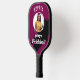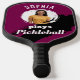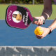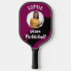A modern and trendy pickleball paddle, which can be personalized with a photo and name on a burgundy red background