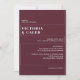 Having your Burgundy Dark Red Modern Minimal Maroon Wedding Invitation match the theme of your party is a great detail that your guests will appreciate. The thoughtfulness of a consistent party theme is often appreciated and can show your guests that you can host a cohesive event.