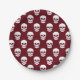 Burgundy Deep Red Skull Pattern Spooky Halloween Paper Plates