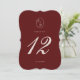 Burgundy Die-Cut Wedding Table Number in a sculpted scalloped shape — a statement detail for elegant fall and winter receptions. Inspired by Old Money aesthetic, Quiet Luxury, and Heritage Estate wedding style. Perfect for couples who love refined, elevated tablescapes. Style with velvet linens, candlelight centerpieces, and deep burgundy florals to create a dramatic and luxurious reception setting.