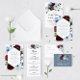A painted flowers design with elegant burgundy and dusty blue flowers. The text and colors can be personalized.