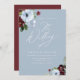 You can edit the design on the back through our Design Tool and selecting "Layers." By customizing the back of your Burgundy Dusty Blue Floral Wedding Invitation, you can have a more complete invitation and present more information to your potential guests, but don’t worry - you don’t have to add a design to the back if you prefer to just have a design in the front.