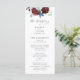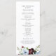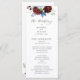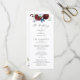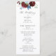 A bohemian theme with watercolor burgundy dusty blue flowers. You can personalize the text and colors on this wedding program.