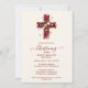 Burgundy Elegant Glitter Floral Cross Baptism Invitation