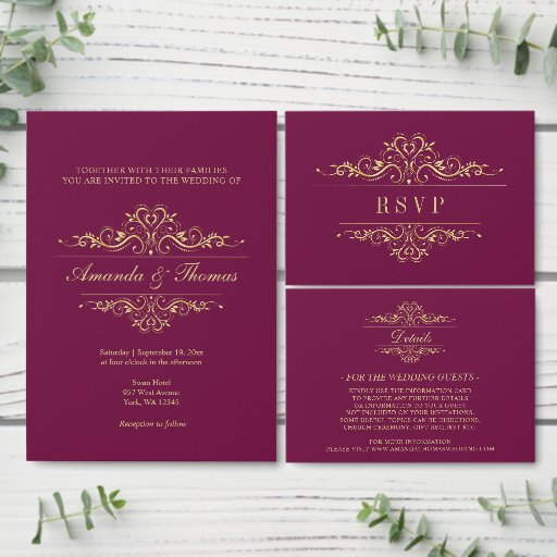 Burgundy with golden frame chic wedding Designed by Brankica B