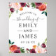 Welcome guests with this warm and romantic burgundy fall floral wedding sign featuring lush coral, peach, and orange blooms with greenery accents. Elegant script and classic typography announce the couple's names and wedding date in a beautifully layered layout. Fully customizable text makes it easy to personalize for your celebration.