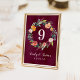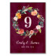 Burgundy Fall Floral Wreath Table Number Card