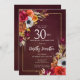 Burgundy Fall Flowers Elegant Script 30th Birthday Invitation