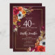 Burgundy Fall Flowers Elegant Script 40th Birthday Invitation