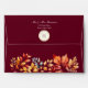 Complete your autumn wedding suite with this elegant burgundy envelope featuring a return address and monogram on the top flap. Watercolor fall leaves in warm shades of red, gold, and orange frame the design beautifully, making it perfect for mailing your invitations or thank-you cards. Stylish and functional for September, October, or November weddings.