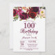 You can edit the design on the back through our Design Tool and selecting "Layers." By customizing the back of your Burgundy Floral 100th Birthday Party Invitation, you can have a more complete invitation and present more information to your potential guests, but don’t worry - you don’t have to add a design to the back if you prefer to just have a design in the front.