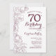 Having your Burgundy Floral 70th Birthday Party Invitation match the theme of your party is a great detail that your guests will appreciate. The thoughtfulness of a consistent party theme is often appreciated and can show your guests that you can host a cohesive event.