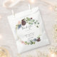 These burgundy floral and greenery thank you wedding favor bags are perfect for a modern wedding. The elegant boho design features watercolor navy, blush pink and wine shade flowers with artistic penciled details.