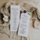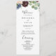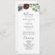 This burgundy floral and greenery wedding program is perfect for a winter wedding. The elegant boho design features watercolor navy, blush pink and wine shade flowers with artistic penciled details.