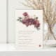 Celebrate your love story with this enchanting burgundy floral wedding invitation. Featuring a lush arrangement of deep red roses, peonies, and eucalyptus leaves, this design evokes a sense of timeless romance and natural elegance. The rich color palette and botanical details create a sophisticated atmosphere, perfect for a classic or rustic wedding celebration. Make your special day unforgettable with this beautifully crafted invitation that sets the tone for a magical event.