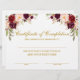Professional, Customizable, Certificate of Completion. Great for classes, training courses, schools, business courses and more. Personalize with your custom text. Elegant Watercolor Burgundy Marsala Floral with burgundy roses, pink roses and botanical greenery. Gold Script.