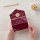 Elegant all-in-one wedding invitation with a romantic burgundy and gold floral design, glowing string lights, and modern script accents. Features a round monogram seal, photo panel, and built-in RSVP with QR code. Ideal for rustic or fall weddings with a stylish tech-friendly twist.