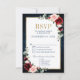 Burgundy Floral Gold Frame Navy Blue Wedding RSVP Card