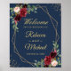 Burgundy Floral Gold Frame Navy Blue Wedding Welcome Sign Poster.