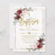 Burgundy Floral Gold Frame Photo Baptism Invitation