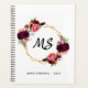 A chic white background. Decorated with a faux gold geometric frame and burgundy, pink and rose gold colored flowers, florals. Personalize and add your monogram letters, initials and a text, title. Perfect for school, work or organizing your personal/family life.