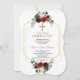 Burgundy Floral Gold Hexagon Frame Holy Communion Invitation