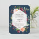 Burgundy Floral Gold Navy Blue Geometric Wedding Invitation