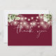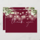 Featuring delicate floral greenery, pretty string lights and an elegant thank-you script on a burgundy background. You can personalize with your own thank you message on the reverse, or if you prefer to add your handwritten message, delete the text. A perfect way to say thank you! Designed by Thisisnotme©