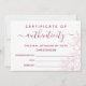 Chic minimalist certificate of authenticity in burgundy, pink, and white with hand drawn light pink flowers and greenery to which you can add your name or business name. Printed on a 5" x 7" card.